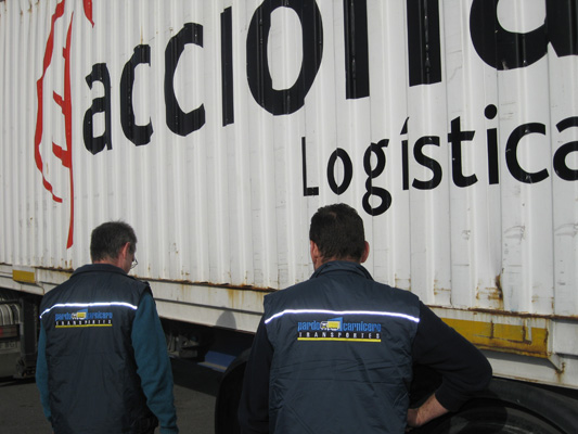 En la siguiente fotografía, podemos ver a nuestros técnicos supervisando la carga de nuestros camiones.